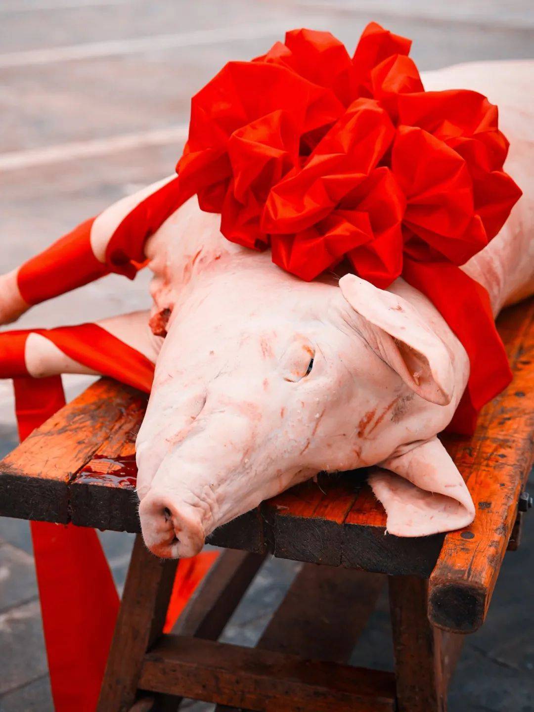 最绝的是后续的“全猪宴”——猪头肉凉拌着吃,猪下水做成合渣火锅,就连猪血都要灌成肠。有游客晒出菜单,光一道“腊肉炖猪头”就用了十八种香料,配上苞谷酒下肚,浑身都暖洋洋的。难怪有人调侃:“明星吓得后退三步,胃却诚实地往前凑了五步。”现在这年俗反倒成了网红打卡项目。文化中心里摆起长桌宴,游客可以亲手体验劈猪头,师傅在旁边手把手教“下刀要准,力道要稳”。有姑娘学劈猪骨时手滑,引得围观群众哄笑,倒让这古老习俗多了点烟火气的人情味。毕竟啊,所谓年味不就是这样——在争议声里传承,在热闹中延续,一口肉一口酒,把日子过得有滋有味。